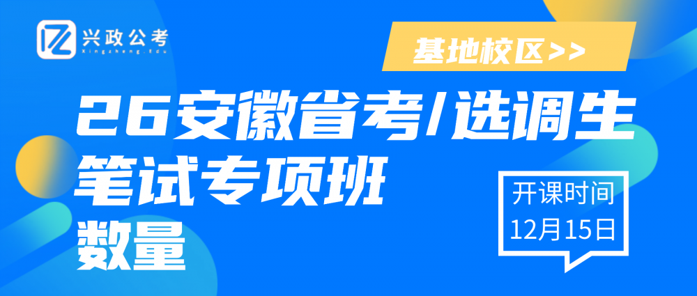 想在26安徽省考/选调生笔试的数量板块突破瓶颈,摆脱“题型辨不清、公式用不对、双考备考没方向”的困扰?12月15日26安徽省考/选调生笔试专项班(数量)基地校区开课,正是你系统搭建数量关系知识框架、适配省考/选调生命题的优质选择!
